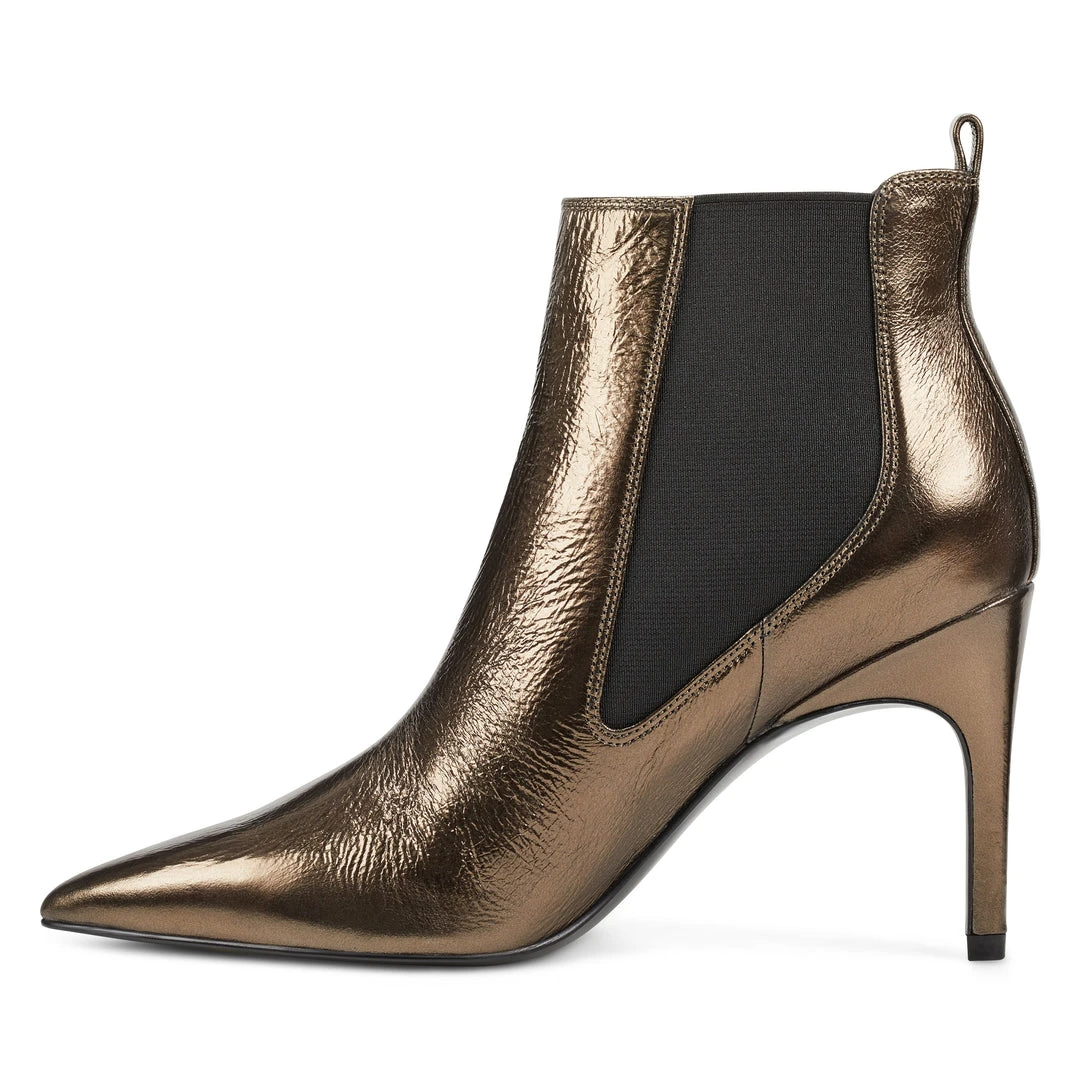 A back pull tab and elasticized sides enable you to slip our Joliee booties on and off with ease. Perched on a 3.43″ heel, Joilee also features a leg-lengthening pointy-toe design.