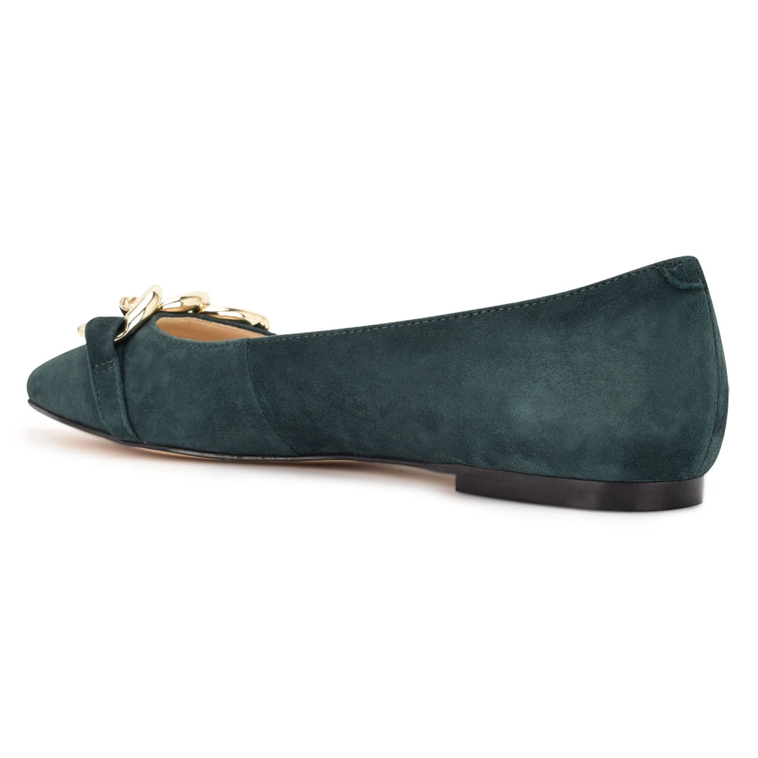 Polished and classic, the Brinks pointed toe flat is a wardrobe essential. This classic silhouette features decorative chain hardware on the toe for added detail.