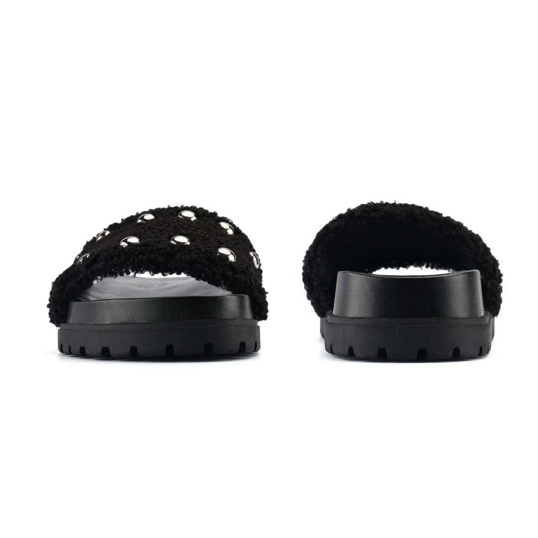The Freely Studded Flat Slide Sandals in our flat collection feature a low heel and open toe toe.