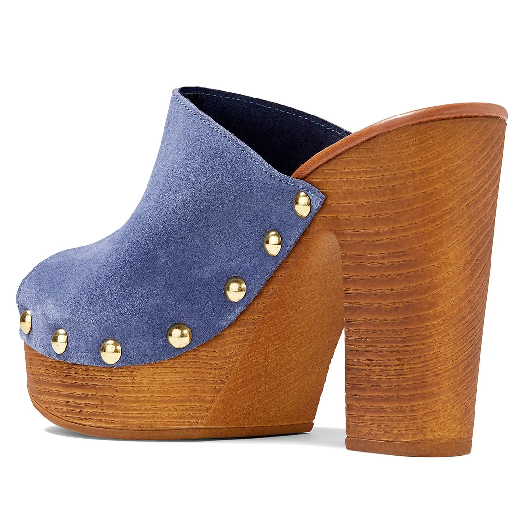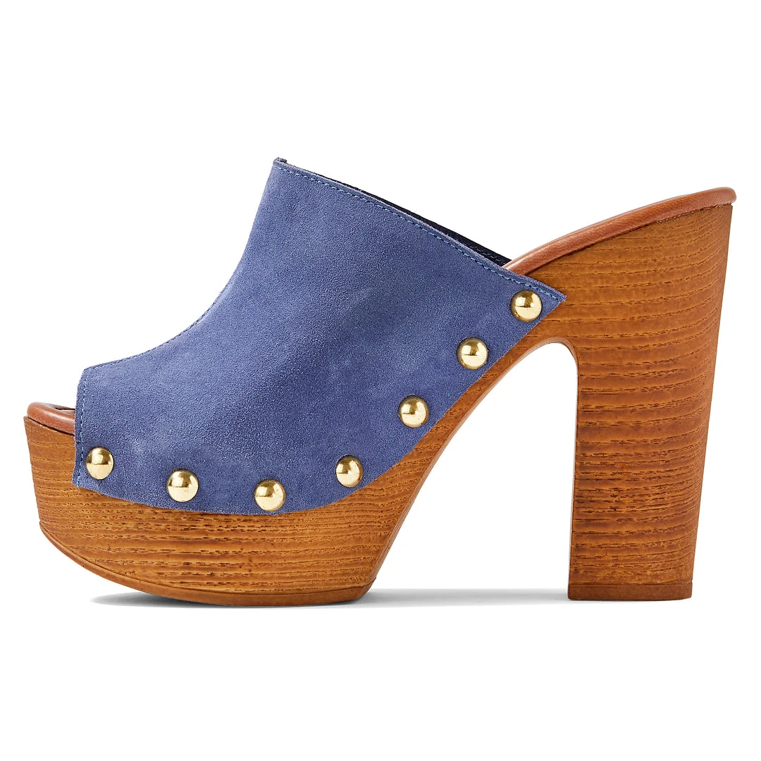The Shaya Heeled Clog Sandals are open toe sandals with a high block heel.