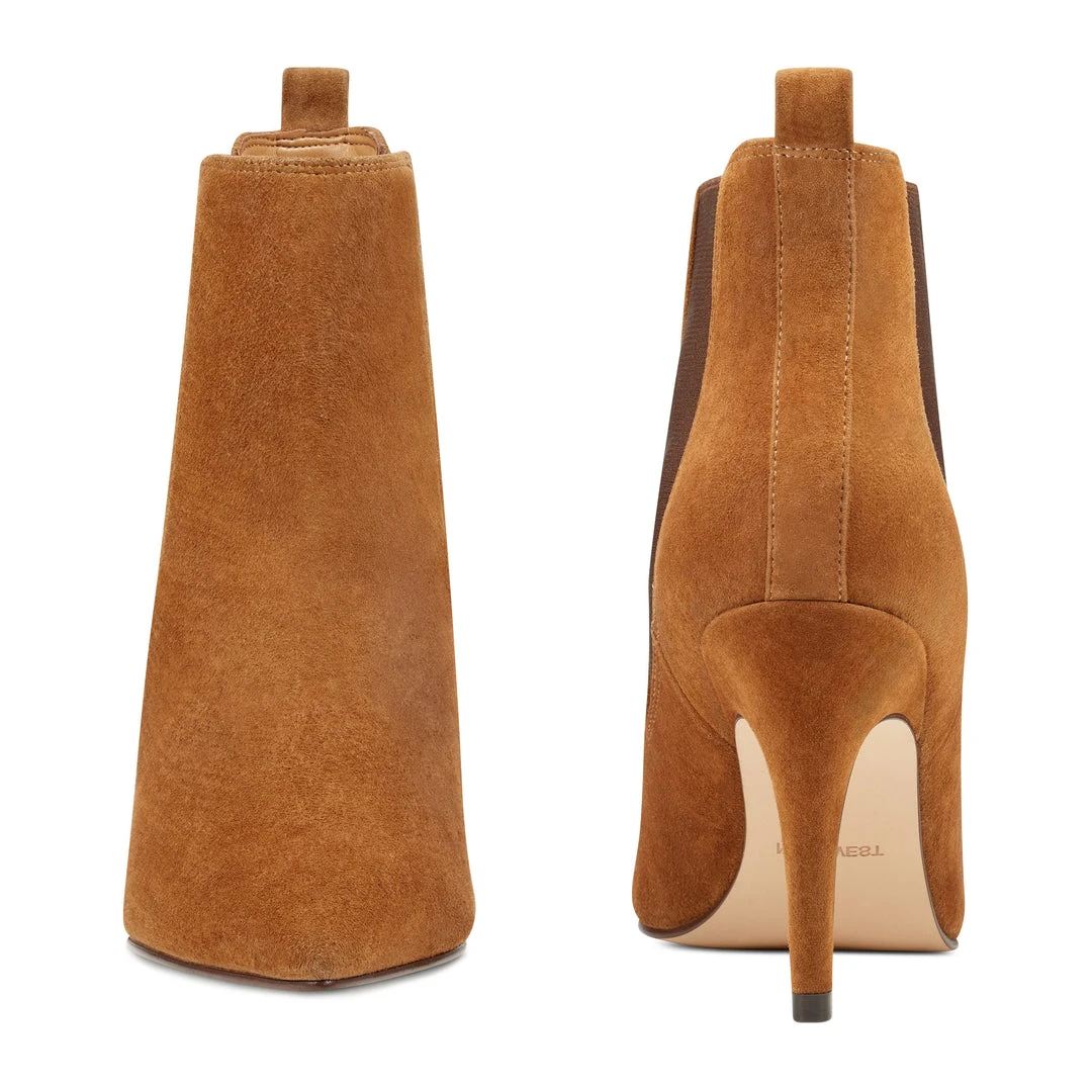 A back pull tab and elasticized sides enable you to slip our Joliee booties on and off with ease. Perched on a 3.43″ heel, Joilee also features a leg-lengthening pointy-toe design.
