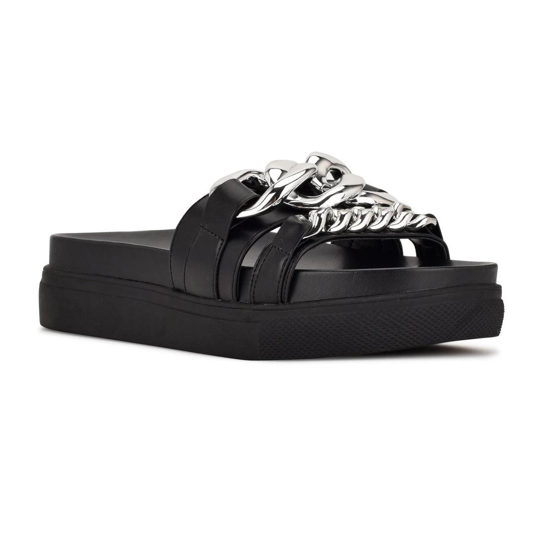 Add a little rock and roll glam to your sandal collection with the Nope platform slide sandals. These platform slides features double straps with metallic chain detailing.
