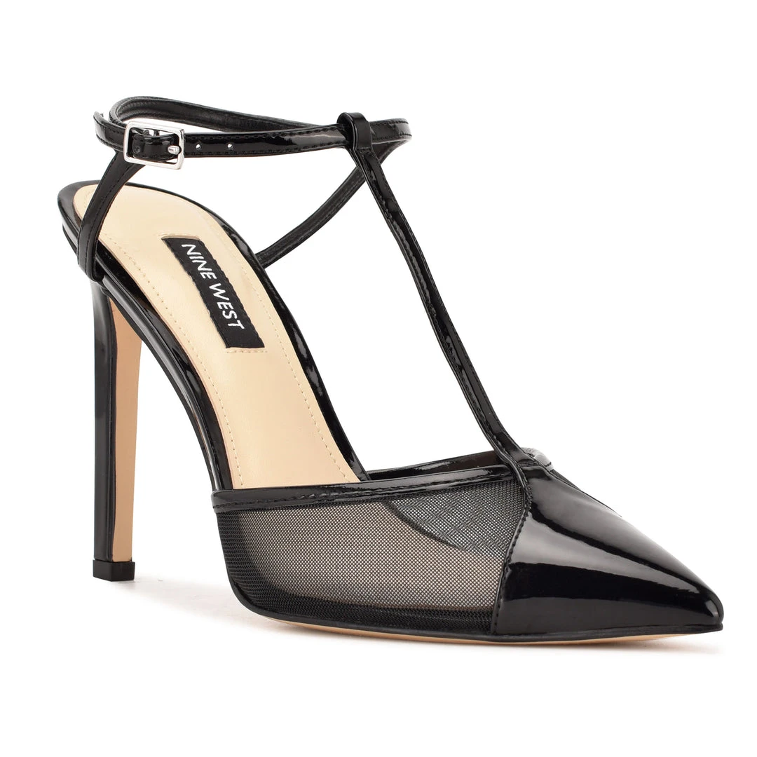 Perfect for a night out on the town, the Terrah T-strap pump is a go-to choice. It features a sky high stiletto heel and skinny barely there straps. The pointed toe also features a sexy peek-a-boo mesh paneling.