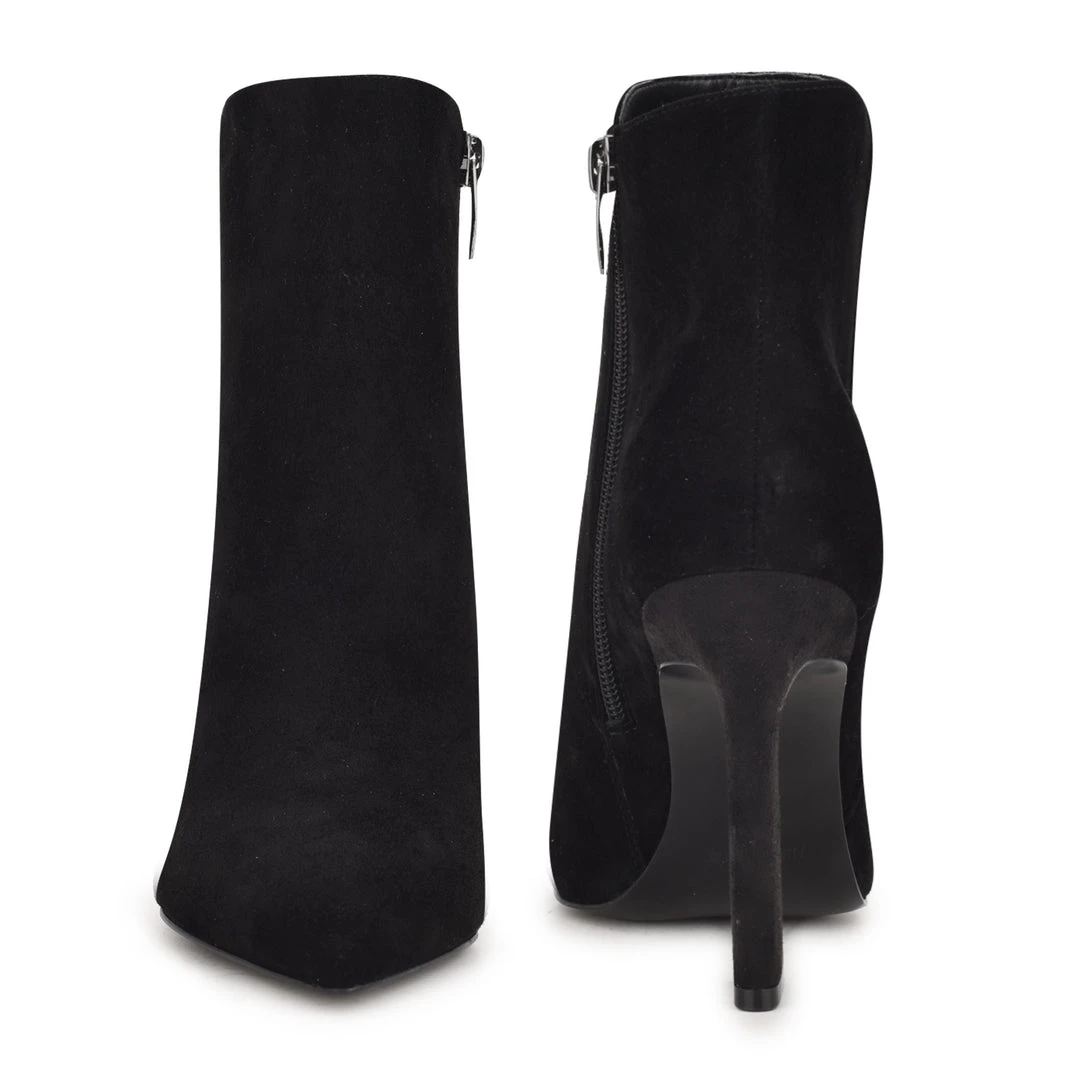 The Torrie Dress Booties in our bootie collection feature a high heel and pointy toe.